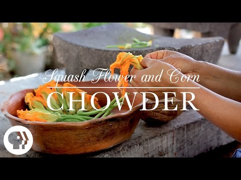 Squash Blossom Flower and Corn Chowder | Kitchen Vignettes | PBS Food - Squash Blossom Kitchens - Recipe: http://to.pbs.org/1d5i0nF Kitchen Vignettes travels to Mexican to make a simple, yet comforting Corn Chowder featuring Squash Blossoms.