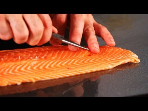 How to Remove Pin Bones from Salmon | Fish Filleting - Salmon Fish Bones - Watch more How to Fillet Fish videos: http://www.howcast.com/videos/509009-How-to-Remove-Pin-Bones-from-Salmon-Fish-Filleting So what we're going to do ...