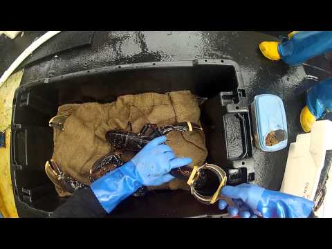 Banding Lobsters - Why Do They Put Rubber Bands On Lobster Claws - Banding lobsters whilst steaming to the next string of pots. Also quickly showing the power of their crushing claw. Recorded with GoPro HD Hero2 in March 2012 ...